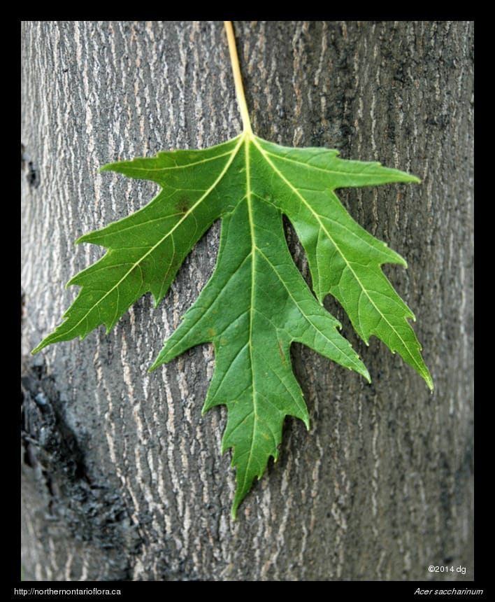 Acer saccharum (sugar maple) is another native 5-lobed maple, but the leaves are much less divided and less toothed along the margin than the leaves of silver maple.