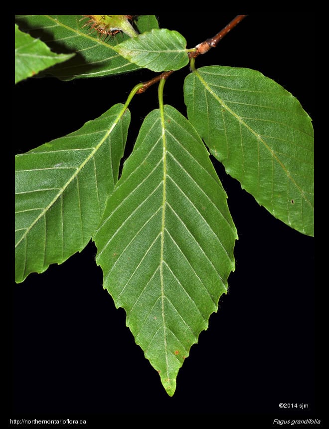 The leaves and twig of Fagus grandifolia, from the Univ. of Wisconsin's Dendrology website.
