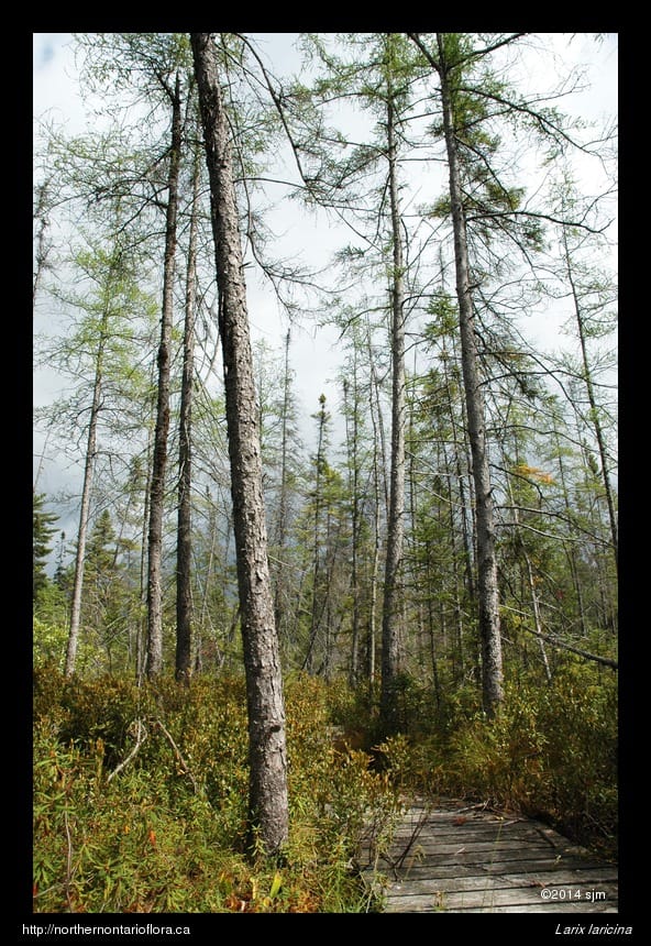 Habitat and Range: In nutrient-poor peatlands, swamps, and low wet depressions. Larch is a boreal species that occurs throughout the Algoma District and across Ontario. Its Canadian range extends from Newfoundland & Labrador to the eastern interior regions of the Yukon and British Columbia.