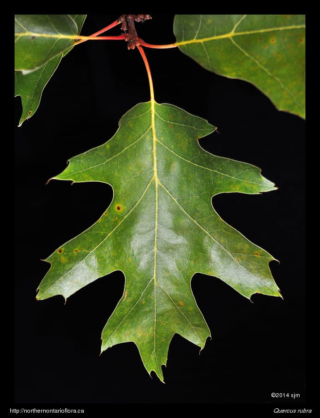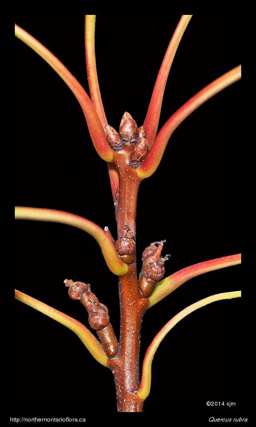 Habitat and Range: Sunny, moist to well-drained or dry upland slopes and ridges in deciduous and mixedwood forests. Native to temperate regions of eastern North America, the Canadian range of the northern red oak extends from Nova Scotia to northeastern Ontario. Northern red oak occurs throughout the southern half of the Algoma District.