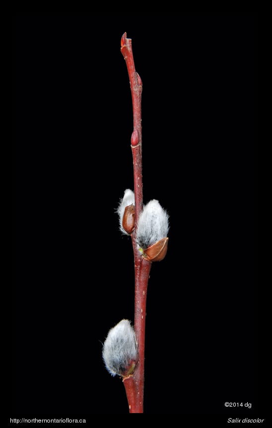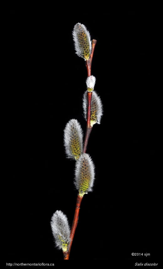 Habitat: Streambanks, moist to wet meadows, open woods, and wetlands. The pussy willow has a Canadian range that extends from Newfoundland & Labrador to central B.C.; it occurs across Ontario, throughout the Algoma District, and extends as far north as 52°N (Soper & Heimburger 1985).
