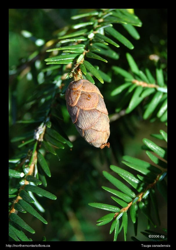 The eastern hemlock, Tsuga canadensis, webpage from Walter Muma's OntarioTrees.com website.