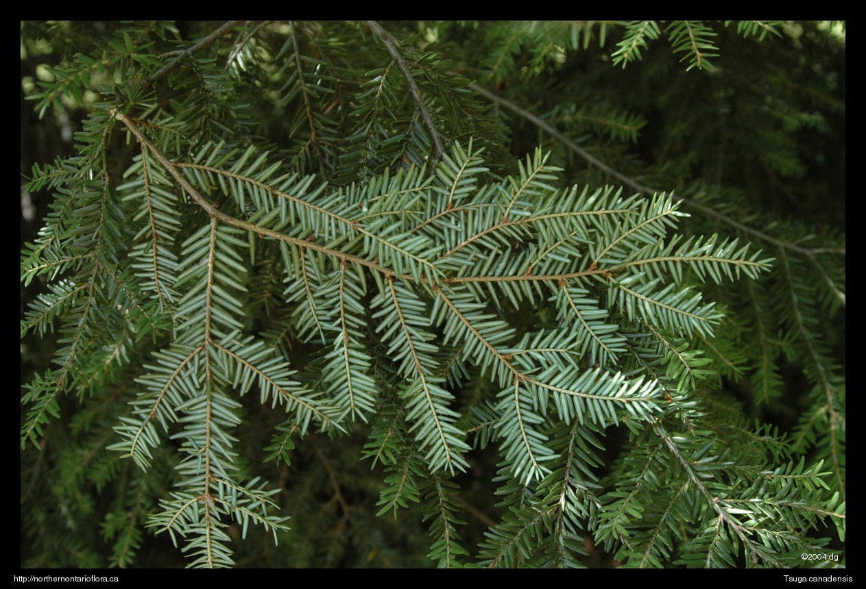 The leaves and cones, and twig of Tsuga canadensis, from the Univ. of Wisconsin's Dendrology website.