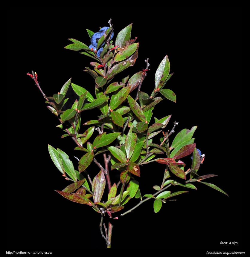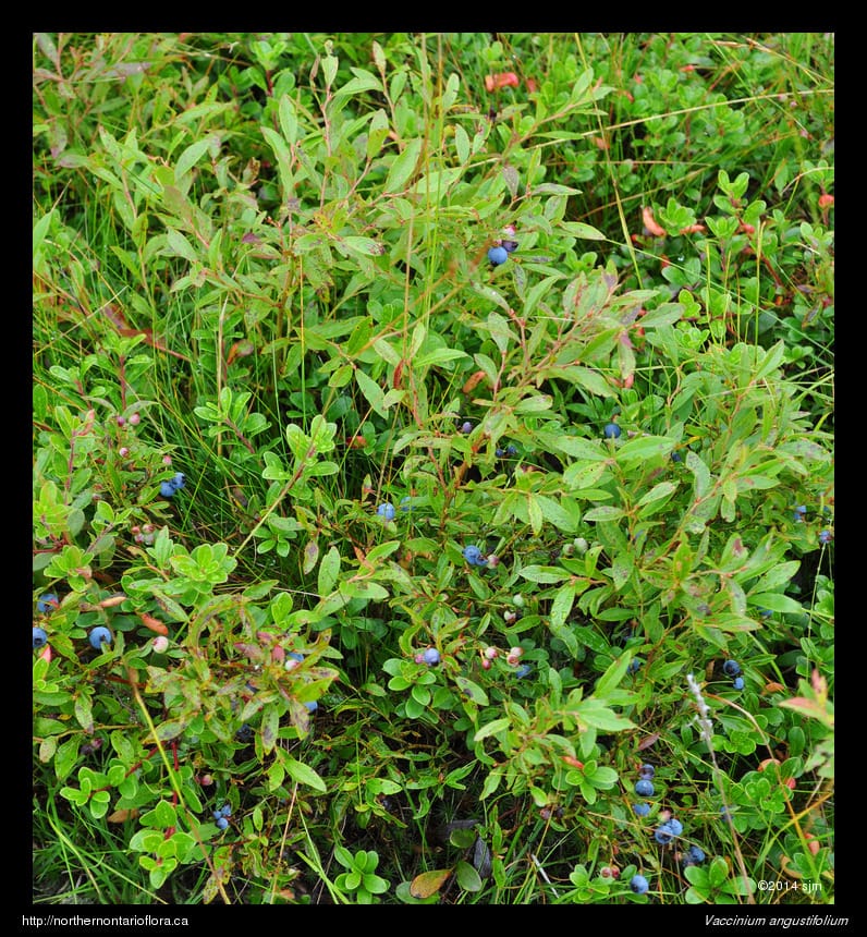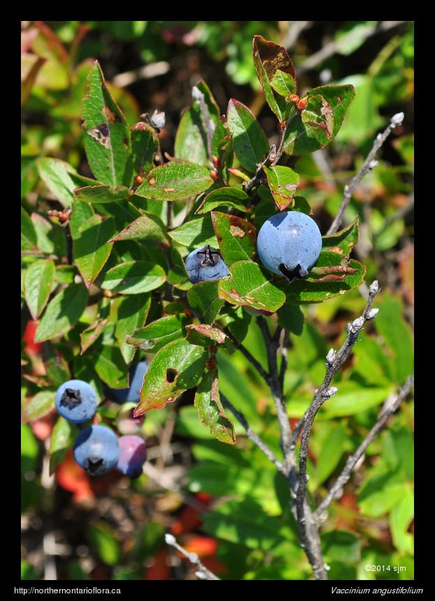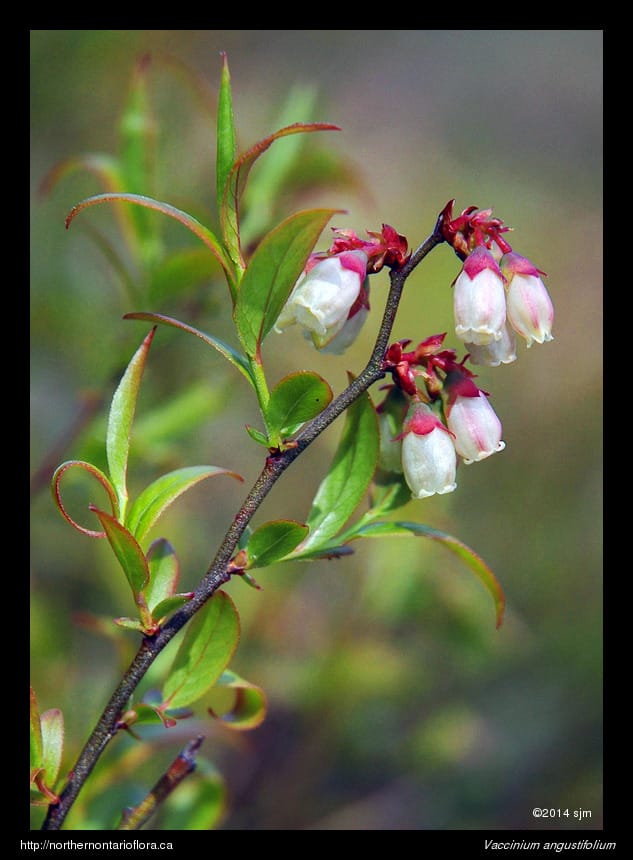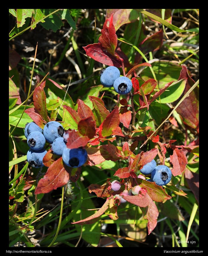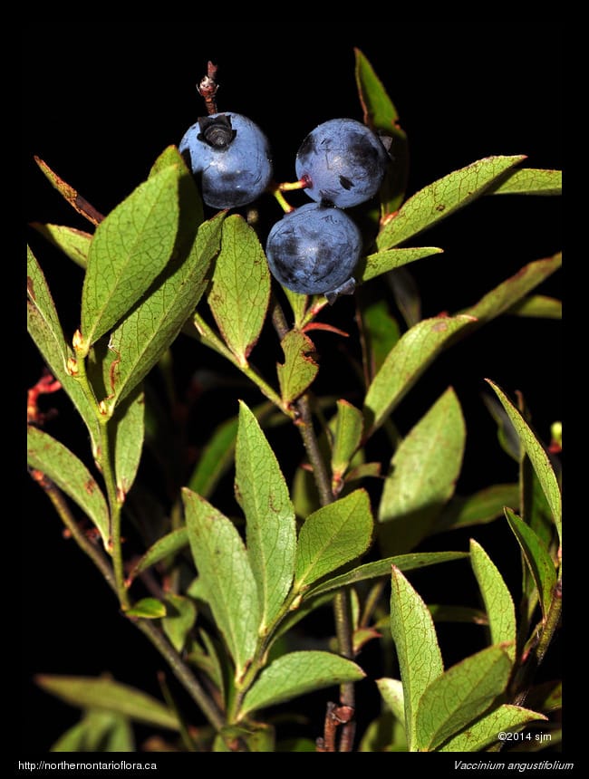 Habitat and Range: Moist to dry, sandy, rocky, or peaty soils, in open forests, barrens, clearing, and rights-of-way; often dominating sites after fire. Lowbush blueberry grows best in open dry sites, but also occurs near peatlands and in open forest habitats. Lowbush blueberry is native to northeastern North America and is found throughout Ontario and the Algoma District, though it is less common above 50° N (Soper & Heimburger 1982).