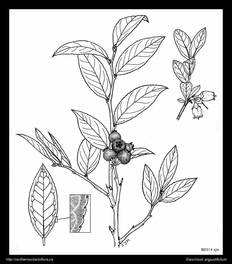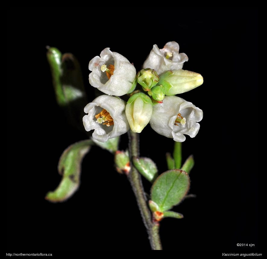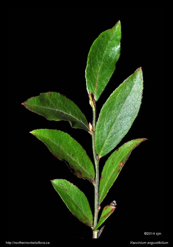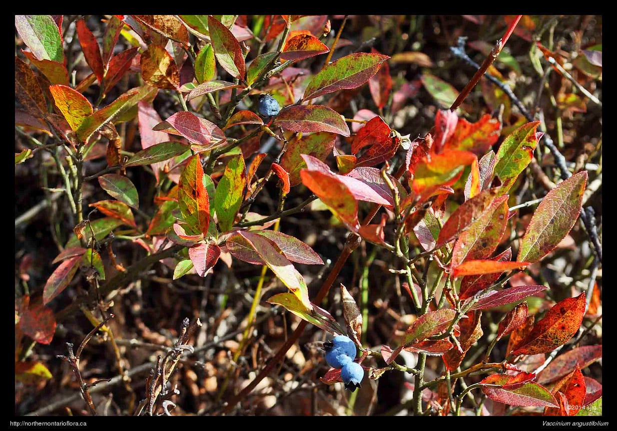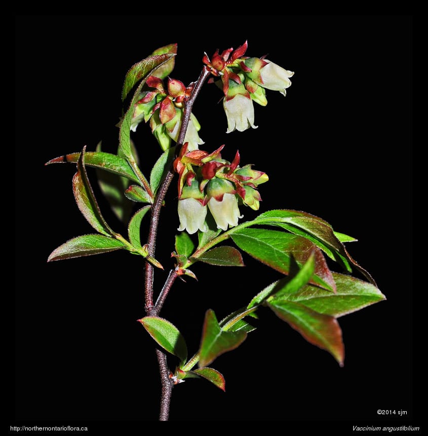 Habitat and Range: Moist to dry, sandy, rocky, or peaty soils, in open forests, barrens, clearing, and rights-of-way; often dominating sites after fire. Lowbush blueberry grows best in open dry sites, but also occurs near peatlands and in open forest habitats. Lowbush blueberry is native to northeastern North America and is found throughout Ontario and the Algoma District, though it is less common above 50° N (Soper & Heimburger 1982).