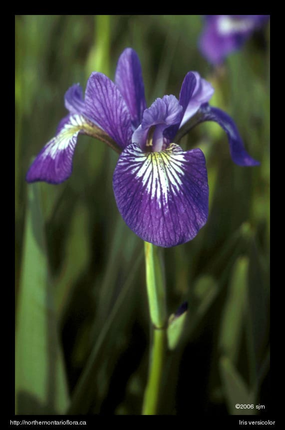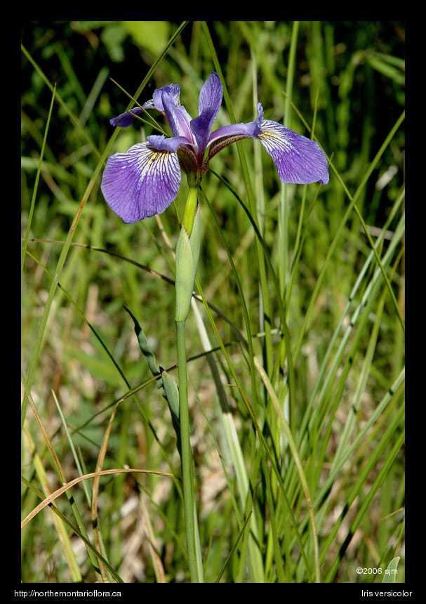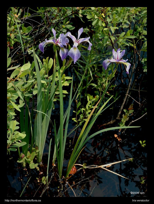 Habitat and Range: Marshes, streambanks, wet meadows and shorelines. Iris versicolor is native to northeastern North America, extending from Newfoundland and Labrador west to Manitoba. In Ontario, it occurs as far north as the Fawn River, 54� N, 89� W (Scoggan 1978).
