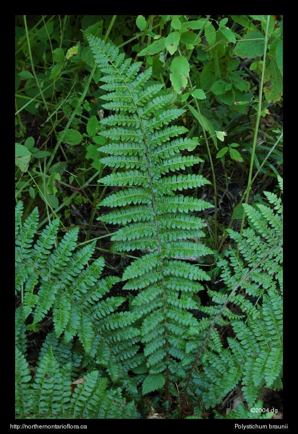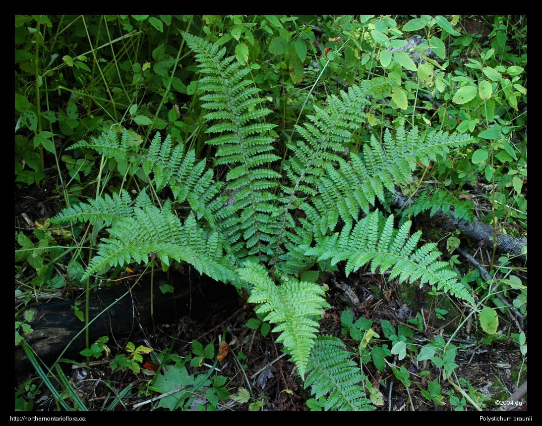 - En: Braun's hollyfern, eastern shieldfern, prickly shieldfern