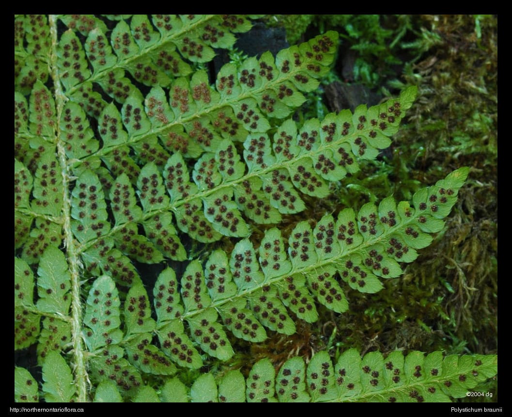Internet Images: This image of Polystichum braunii, from Matt Goff, shows the detail of the pinnules and the scaly rachis.