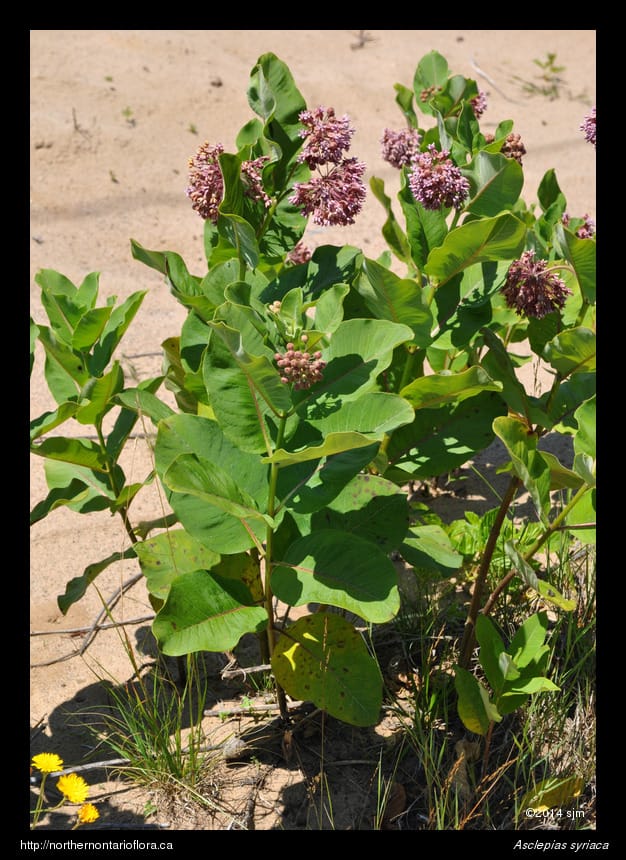Habitat and Range: Disturbed areas, such as roadsides, dry fields, rights-of-way, and railway margins. Common milkweed is native throughout most of eastern and central North American. In Ontario, it occurs throughout the Algoma District, and extends north to Timmins in the Cochrane District and west to southern portions of northwestern Ontario.