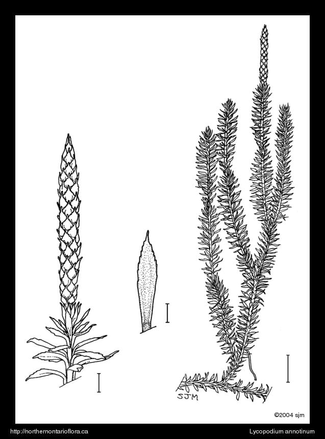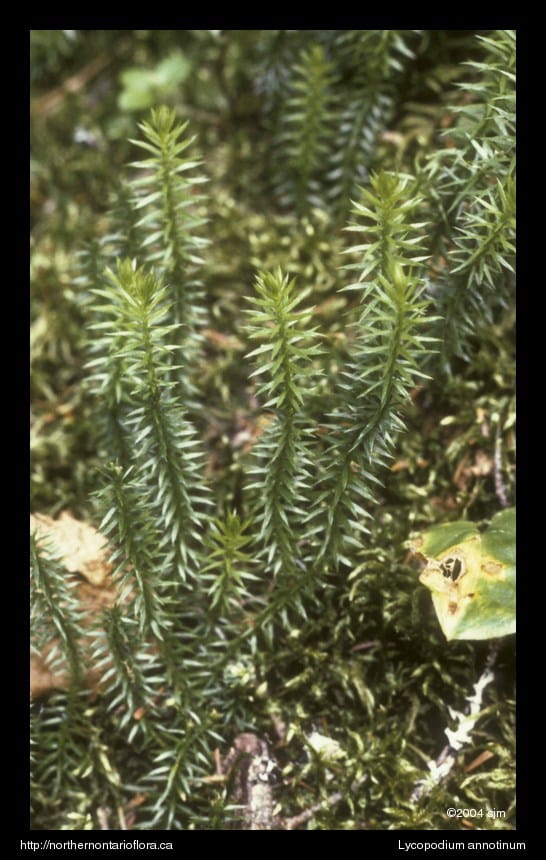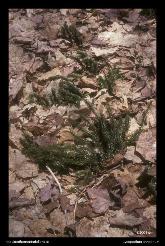 Habitat and Range: Moist boreal forests, barrens, swamps, clearings, and rocky or peaty sites. Lycopodium annotinum is native to boreal and subarctic North America and Eurasia (circumboreal); it is common throughout Ontario.
