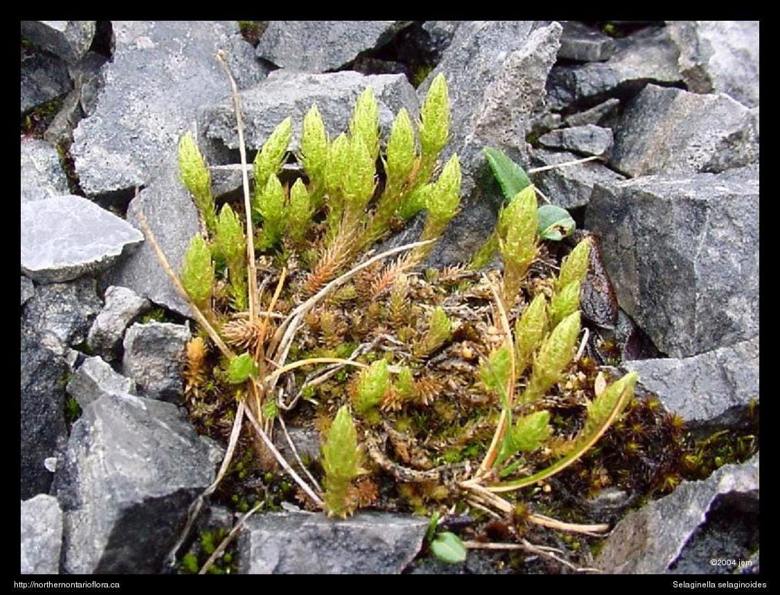 Habitat and Range: Damp mossy shores and banks, bogs, wet woods, on neutral to basic (calcareous) substrates. Usually found growing amongst mosses, so easily overlooked. The northern spikemoss is a circumboreal species with an interrupted distribution in North America; it occurs throughout Ontario.