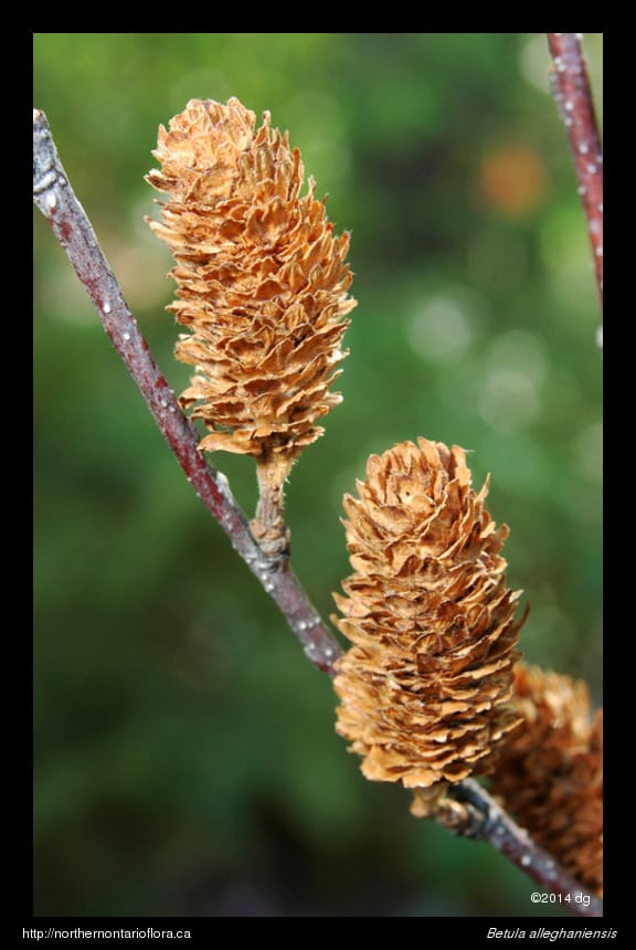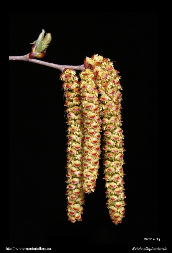 Yellow birch may also be confused with Ostrya virginiana (ironwood). The inflated involucres surrounding the small nutlets of ironwood are the most obvious difference, but Ostrya twigs also lack the wintergreen flavour and spur shoots characteristic of yellow birch, and have buds with several bud scales.