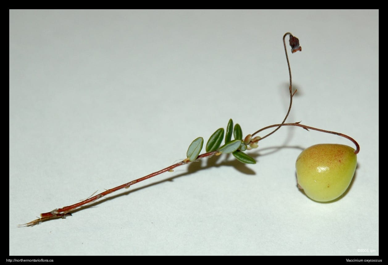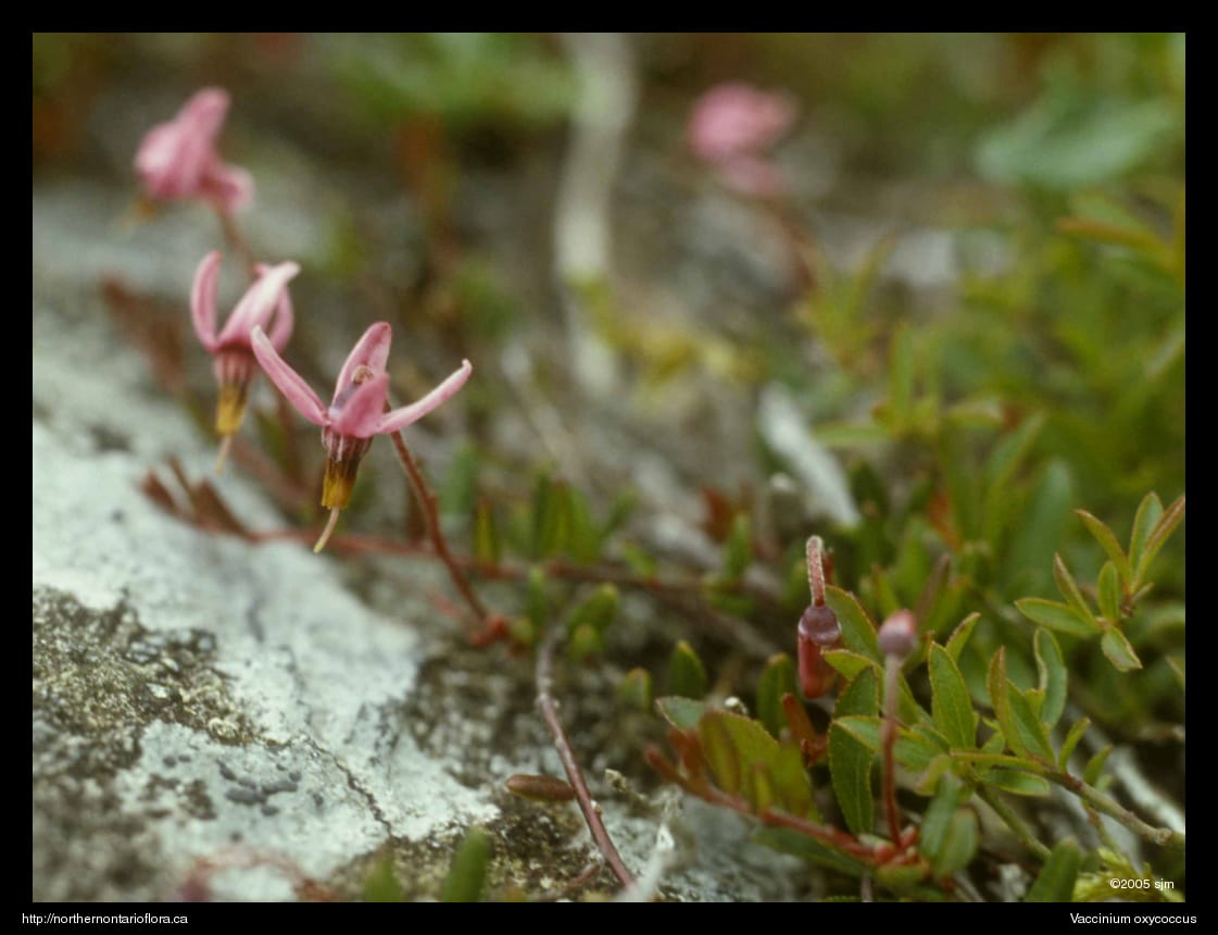Habitat and Range: Sphagnum bogs and fens, as well as other wet acidic habitats. Vaccinium oxycoccus is circumboreal and occurs throughout northern Ontario.