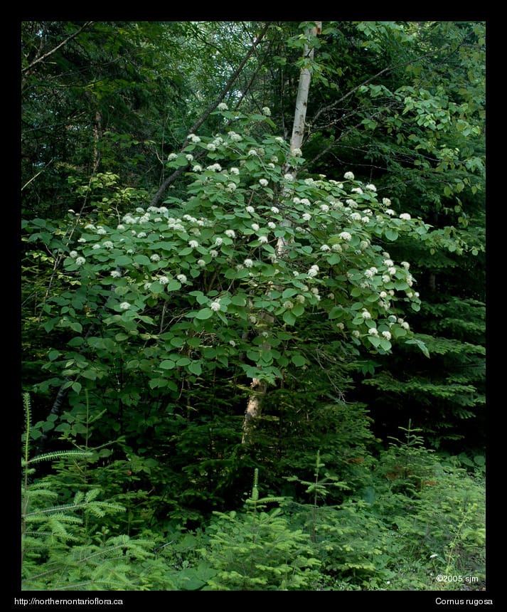 Habitat and Range: sandy, gravelly, or rocky slopes, often growing in areas underlain by limestone bedrock. The roundleaf dogwood is also a temperate, northeastern North American species that occurs throughout southern and eastern Ontario; in northern Ontario it occurs farther north than the alternateleaf dogwood, but does not extend past 50°N (Soper and Heimburger 1982).
