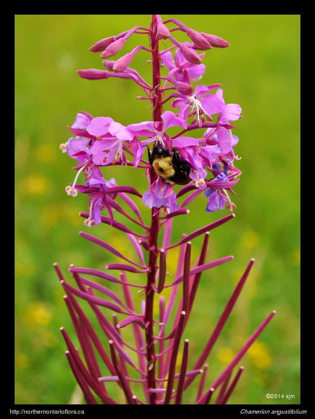 Habitat and Range: Open disturbed areas, such as old burns, recent clearcuts, open fields, and roadsides. Fireweed is circumboreal in distribution and occurs in all Provinces of Canada; it is found throughout the Algoma District and Ontario.