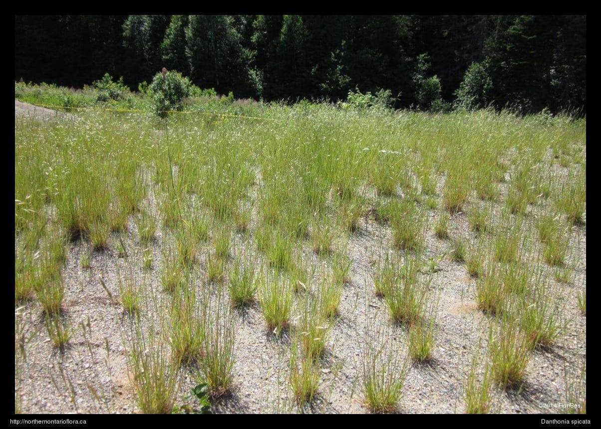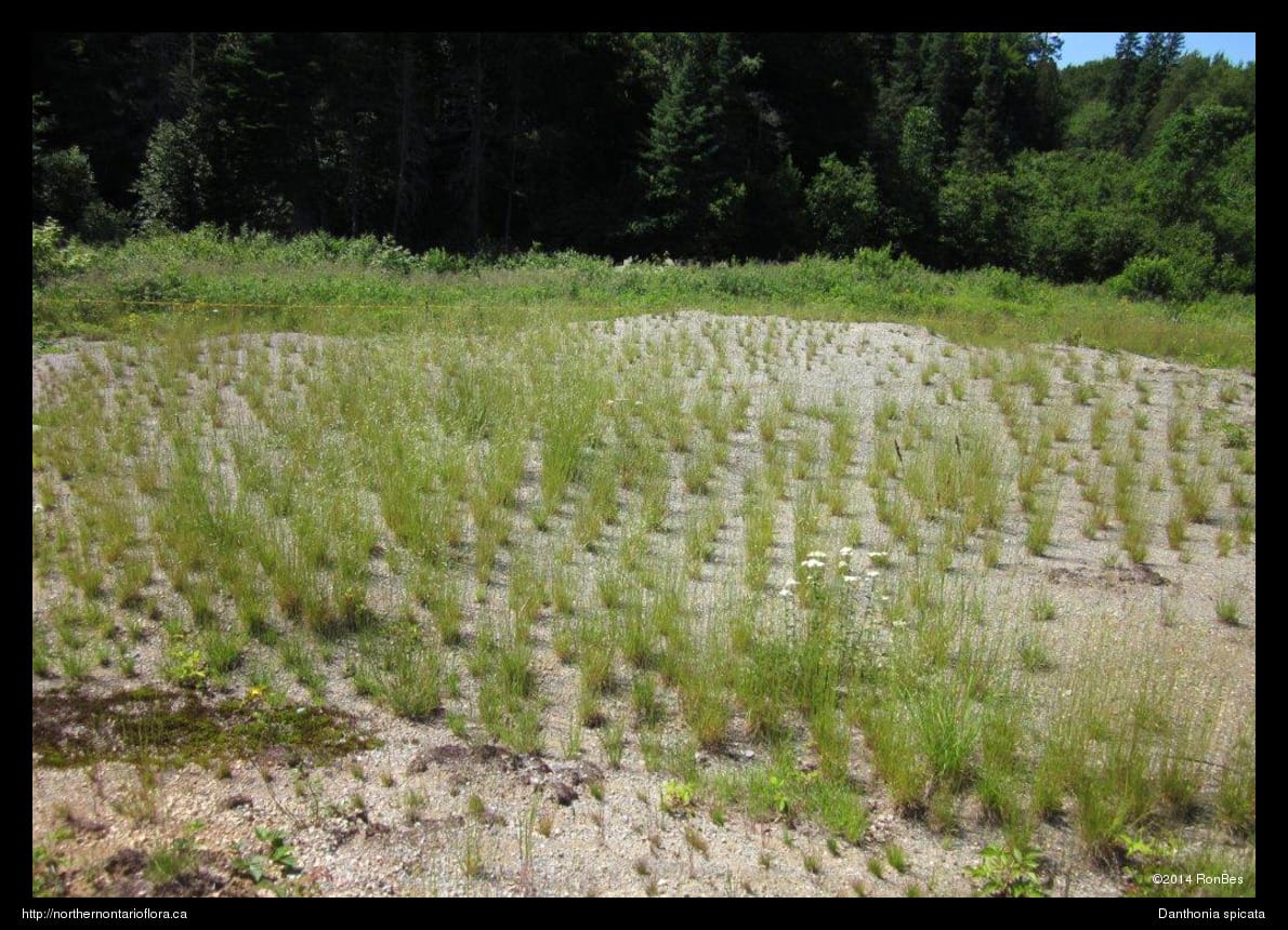 Habitat and Range: Dry sandy, rocky, or mineral soils, preferring open areas such as sunny rights-of-way or dry open woodlands; most commonly found on dry sandy soil. Plants grown in the shade tend to be taller and have fewer flowers and slightly hairy leaves, which do not curl like those of plants grown in sunny locations. Poverty oatgrass is found throughout the Algoma District and Ontario. Its range extends through temperate and boreal regions of North America, extending from Newfoundland and Labrador west to British Columbia, and from the southern Yukon south to northeastern Mexico. Poverty oatgrass is more common in eastern North America than western.